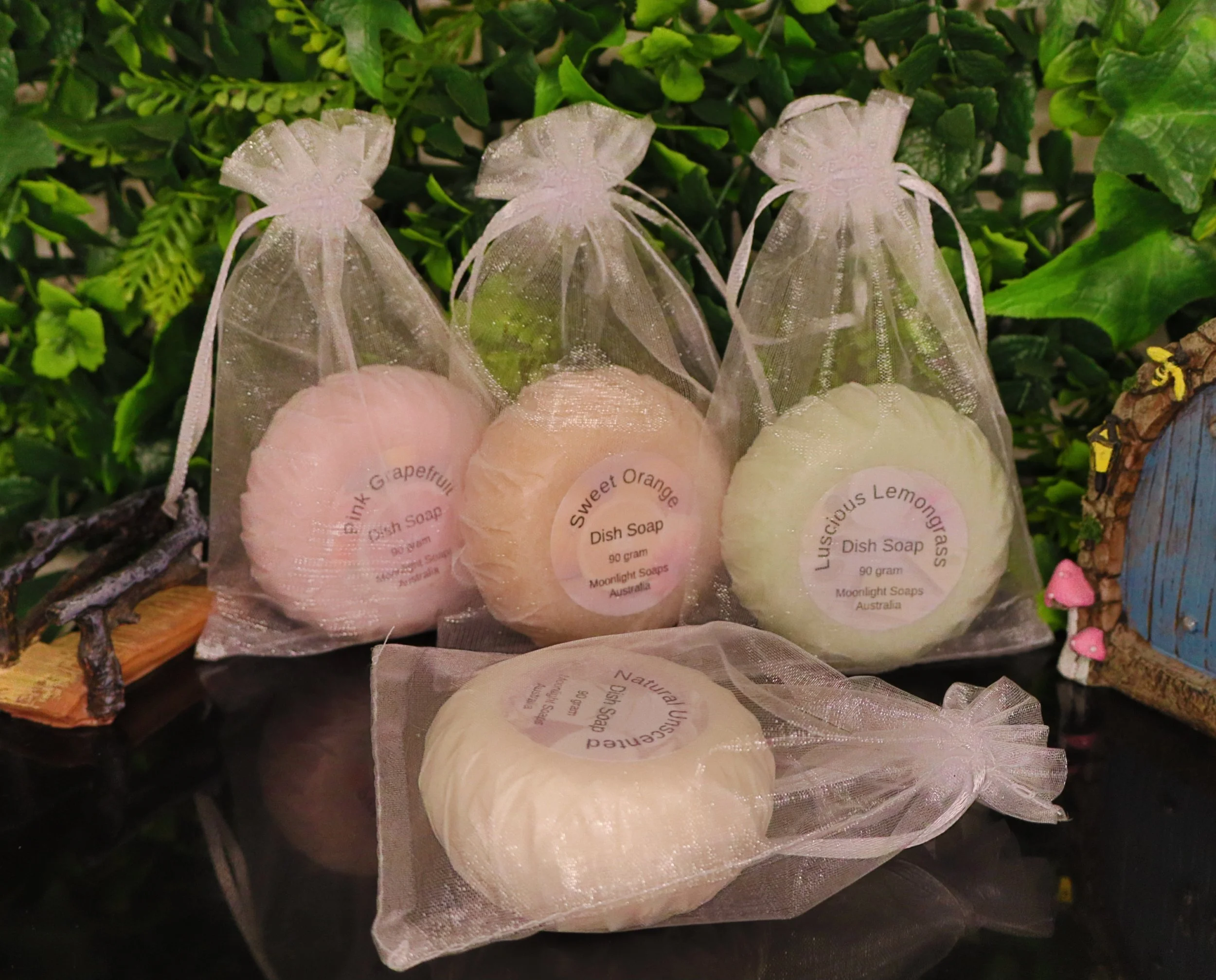 You can even unwrap the soap and then pop it back into the organza bag and hang it on the tap over your sink.